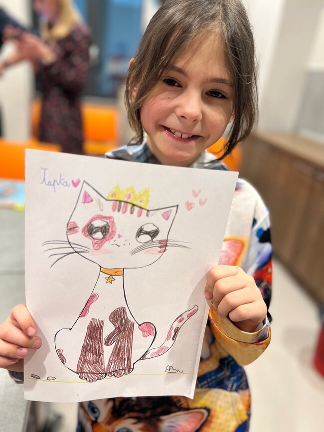 O kotach wiemy dużo, ale czy na pewno wszystko? Dzieci mogły się o tym przekonać podczas filmiku poświęconego czterdziestu najistotniejszym ciekawostkom z ich życia. Na koniec otrzymały kartki z zarysem kota, a ich zadaniem było nadać mu indywidualny charakter. Jak pięknie wyszło widać na załączonych fotografiach.