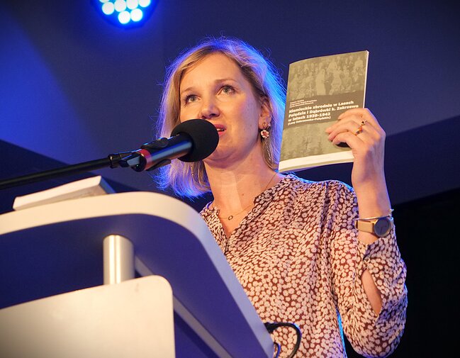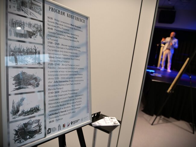 Konferencję prowadziła Marta Szczesiak-Ślusarek, kierująca pracami Oddziałowego Biura Edukacji Narodowej IPN w Poznaniu. To właśnie to biuro od lat prowadzi szeroko zakrojone prace badawcze na temat tego, co działo się w Forcie siódmym i w lasach Dąbrówki, Palędzia i Zakrzewa. Opowiedziała o latach zaniechań w badaniach i o obecnym zaangażowaniu w nie swojego biura. Ogromny wpływ na to, że one trwają, miała lokalna społeczność gminy Dopiewo, która o zbrodniach nie zapomniała nigdy. O tym już opowiedziała była wójt, dyrektor szkoły w Dopiewie i działaczka społeczna - Zofia Dobrowolska. Jest niestrudzoną strażniczką pamięci.