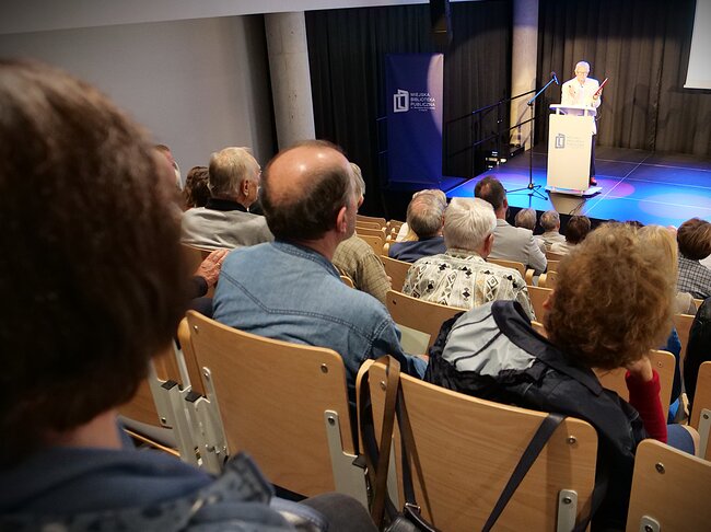 Jako ostatni wystąpił na scenie inicjator konferencji - profesor Lechosław Dworak, który był w 1971 roku na uroczystym odsłonięciu Pomnika Studentów, do dziś najbardziej okazałego monumentu strzegącego pamięci o ofiarach mordów tamtego czasu. Inicjatorem budowy pomnika był jego brat - Zdzisław Dworak. Profesor Lechosław opowiedział zebranym o wieloletnich działaniach Uniwersytetu Medycznego na rzecz wiedzy i pamięci o zbrodni, i ofiarach.