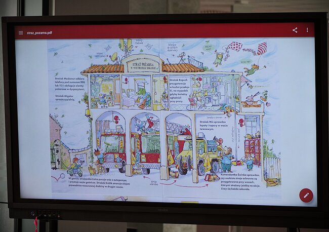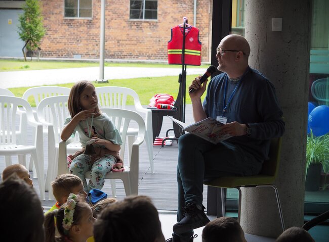 To był niezwykły dzień. W holu na parterze stawiło się tyle dzieci, że gdy w trakcie czytania ,,Strażaków w akcji’’ (polecamy), Paweł Wiszniewski poprosił dzieci o prezentację sygnału straży pożarnej, głosy dziesiątek dzieci zbiegły się w taką syrenę, że wprawiły w niepokój prawdziwych strażaków. Jest moc w dzieciach! Syrenę włączyli też zaraz sami strażacy. Pod LGK bowiem zaparkowali wielkim wozem strażackim i pozwolili dzieciom do niego wsiadać. Prezentowali też wyposażenie wozu i opowiadali o pracy strażaków. Swój sygnał na chwilkę włączyli też parkujący w patio policjanci. Na alarm na dwa głosy biła też nasza Straż książkowa. Było głośno i radośnie. Policjanci przygotowali ponadto pogadankę o tym, jak bezpiecznie zachowywać się w wakacje i podobnie jak strażacy - zaprosili dzieci do swojego radiowozu. W Sali audiowizualnej prezentowaliśmy film - ,,Strażak Sam’’, a na drugim piętrze zaprosiliśmy dzieci na warsztaty plastyczne. Mamy po nich w zasobach kilkadziesiąt mistrzowsko narysowanych wozów strażackich. Dziękujemy!