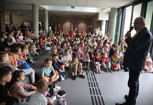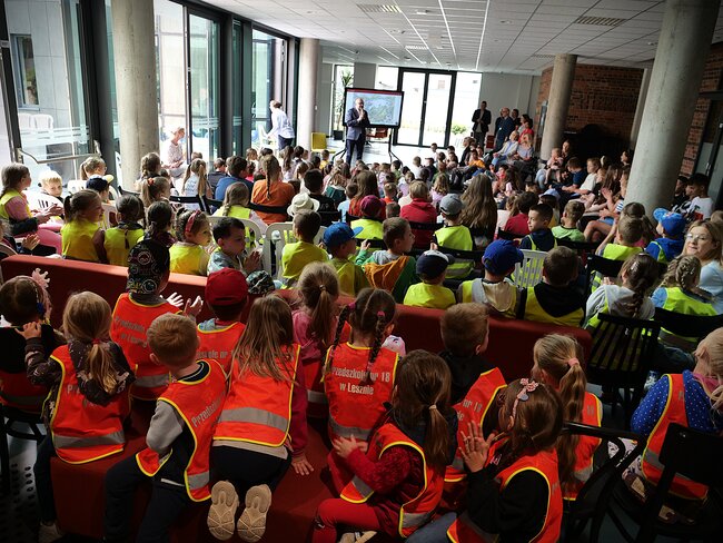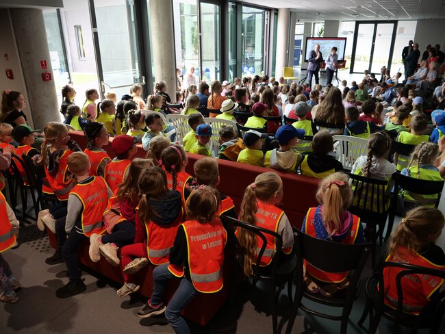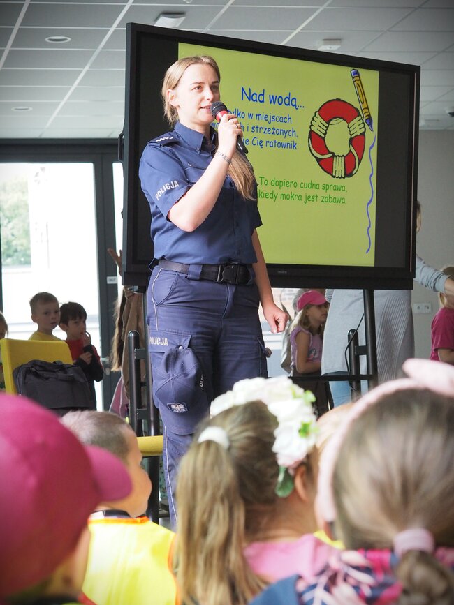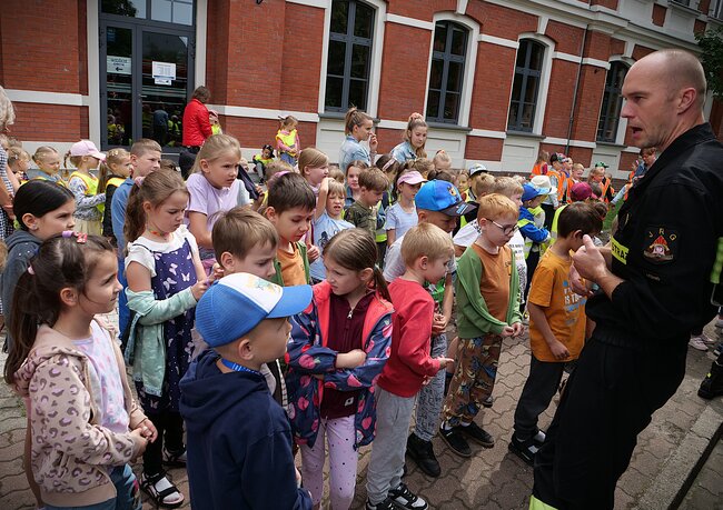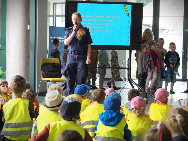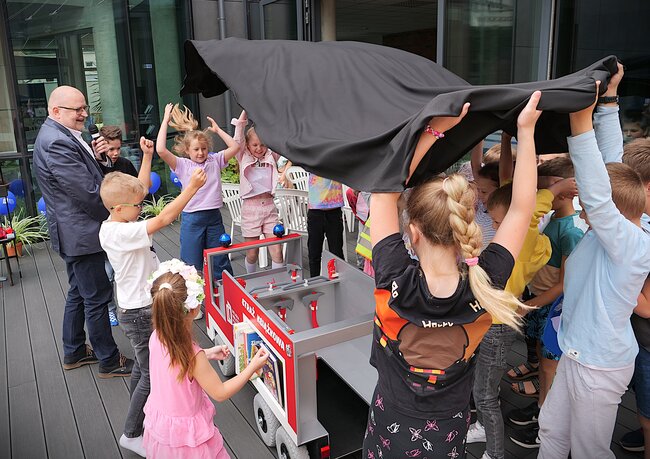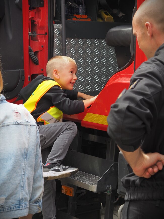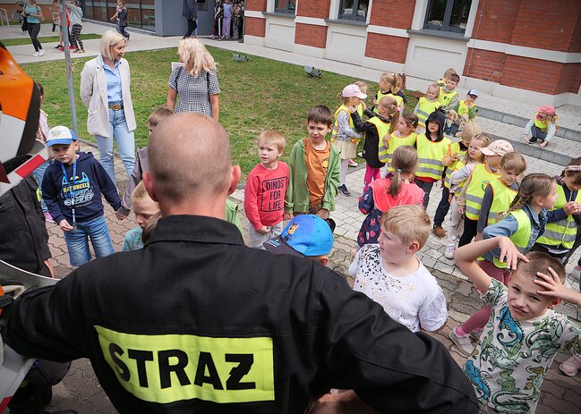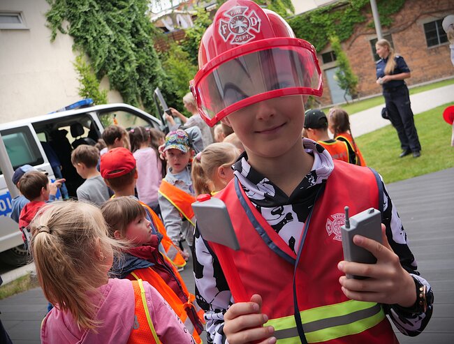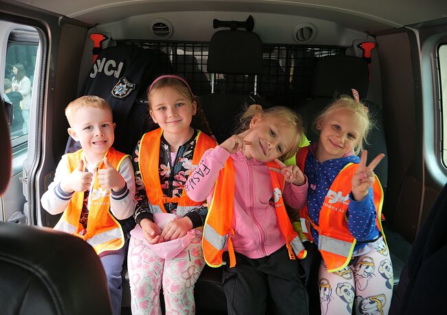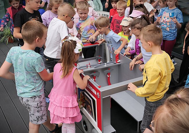 Zabawkę do której może wejść nawet czwórka dzieci dyrektor Andrzej Kuźmiński odsłonił uroczyście razem z kilkudziesięcioma kilkulatkami. Dość powiedzieć, że po tym spotkaniu prawie połowa kilkulatków chce zostać strażakiem lub policjantem, a o sto więcej wie już, jak zadbać o swoje bezpieczeństwo w wakacje.