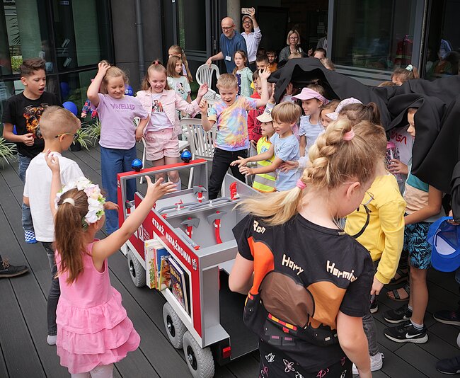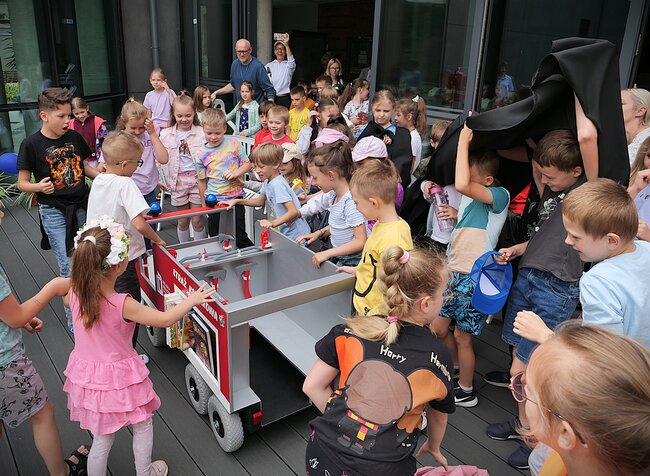 Ratunku, pomocy! Leszczyńską Galerię Książki zalało prawie dwieście dzieci z leszczyńskich szkół i przedszkoli. Wczoraj, 14 czerwca, odbył się u nas festyn Bezpieczne wakacje. Pokazaliśmy też długo przygotowywaną niespodziankę - Straż książkową, czyli wóz strażacki, który będzie pędził z czytelniczą pomocą. Oj, działo się!