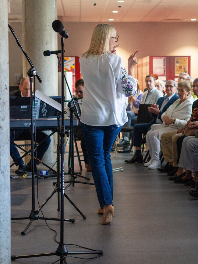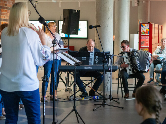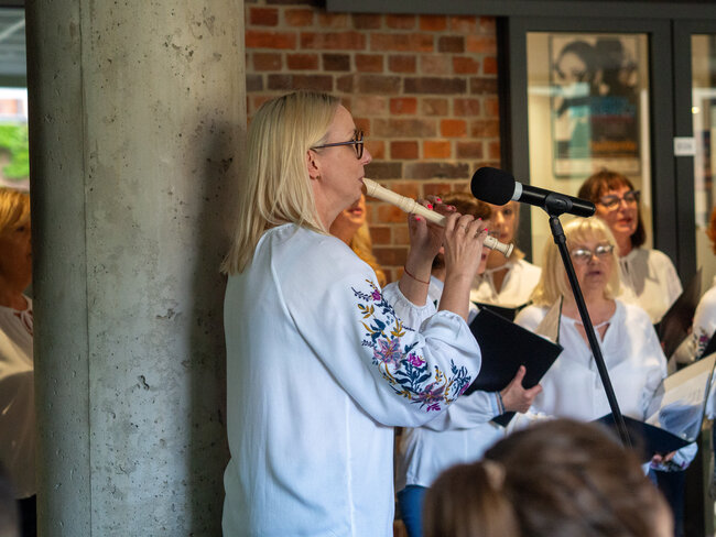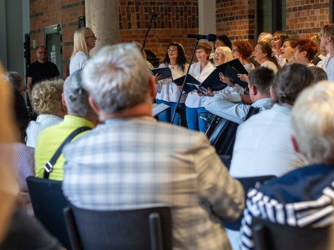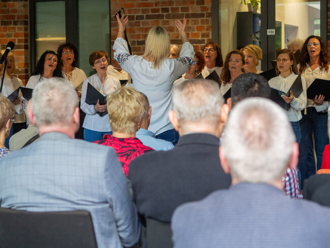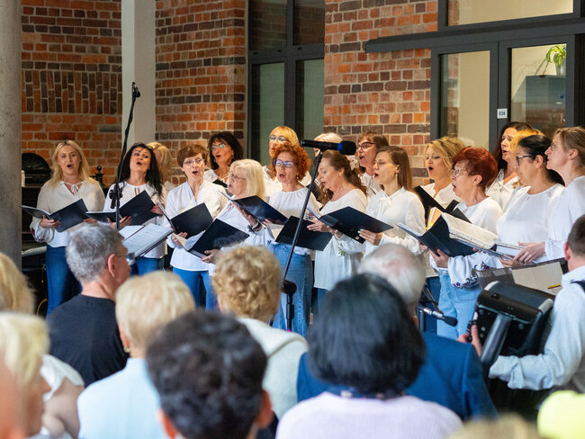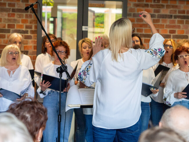 Było to otwarcie nowego sezonu koncertowego wraz z nowym repertuarem, w którym znaleźć można znane i lubiane utwory polskie i zagraniczne oraz piosenki ludowe. Na godzinnym koncercie mogliśmy wysłuchać głosów 18 uczestniczek, którym dyrygowała Izabela Grunwald, a przygrywał im Tomasz Biberstajn na klawiszach i Łukasz Pawlik na akordeonie. W repertuarze mogliśmy usłyszyszeć m. In. „Thank you for the music” ABBY, „Serce w Plecaku”, „Dwa serduszka” z filmu „Zimna Wojna” i wiele, wiele innych.
