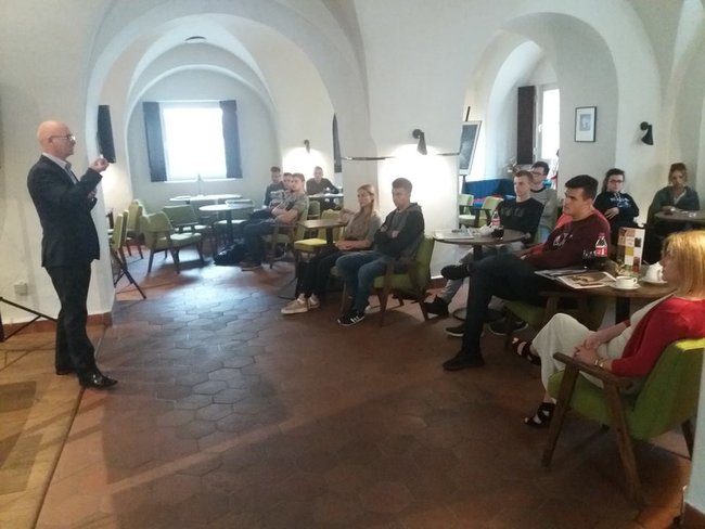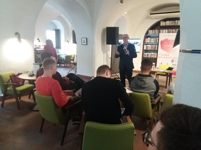 W ramach projektu "(S)Twórz Niepodległość" w Bibliotece Ratuszowej odbył się cykl wykładów prof. Waldemara Handke. Profesor opowiedział o ppłk Feliksie Motyce. W wykładach uczestniczyli uczniowie Zespołu Szkół Ekonomicznych wraz z panią dr Barbarą Foryńską.