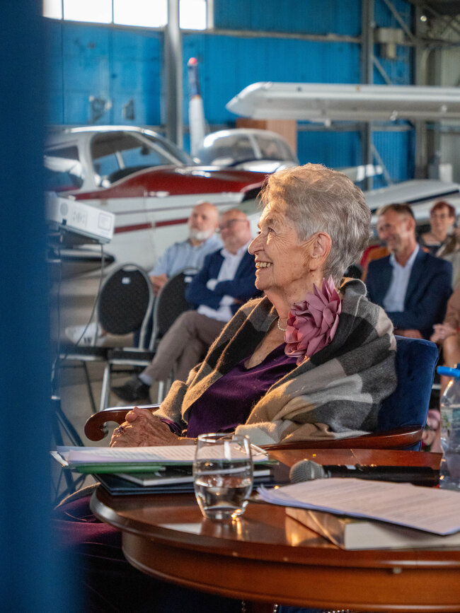 Na zakończenie jubilatka otrzymała niecodzienny prezent – lot dwumiejscowym szybowcem. Po kilkunastoletniej przerwie znów mogła zasiąść za sterami, symbolicznie potwierdzając, że jej życie rzeczywiście od zawsze toczyło się z głową w chmurach.