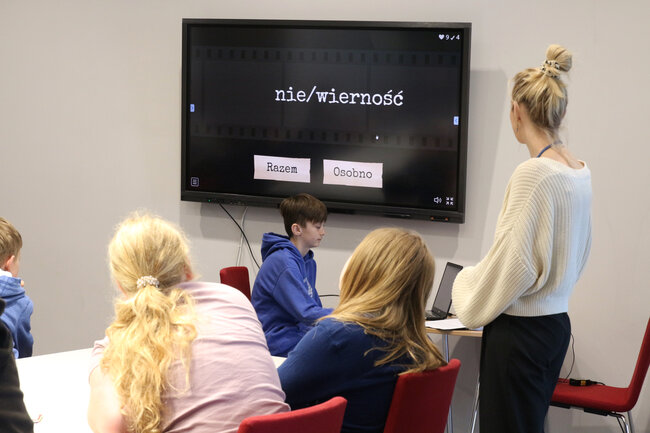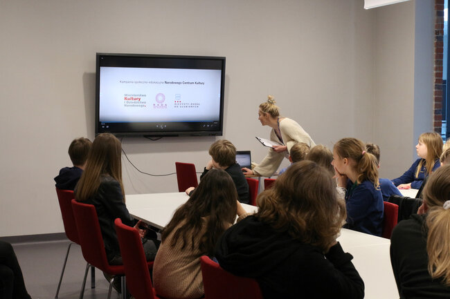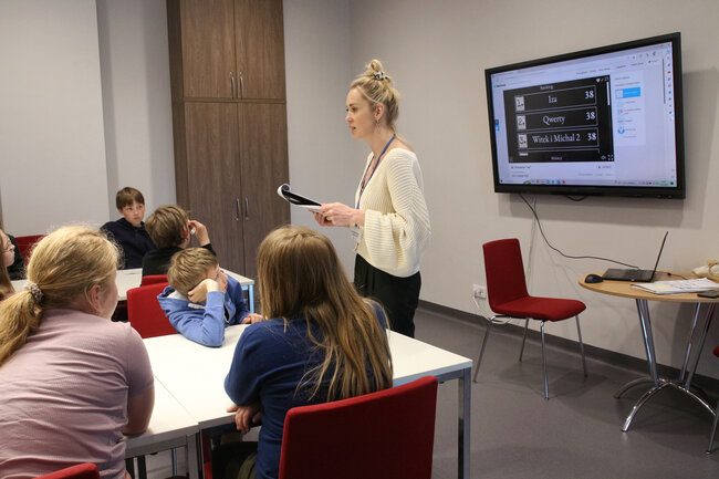 Podczas zajęć poprawności językowej uczestnicy próbowali odczytać łamańce językowe takie jak: W czasie suszy szosa sucha, czy Jola lojalna, Jola nielojalna. Kolejnym z zadań było szukanie synonimów słowa fajny. Następnie dzieci tropiły zapomniane wyrazy m.in. kajet, facjata, waćpanna czy rychło, a także zagrali w quiz komputerowy, dzięki któremu przećwiczyli zasady pisowni "nie" z różnymi częściami mowy. Obejrzeli także krótki film edukacyjny ,"Z - jak zagadka" oraz wysłuchali ciekawostek o języku polskim, z których dowiedzieli się m.in., że polski alfabet opiera się na alfabecie łacińskim, oraz że pierwsze elementarze do nauki języka polskiego ukazały się na początku XVI wieku. Na koniec zostawili na karteczkach dobre słowo dla uczestników kolejnych zajęć.