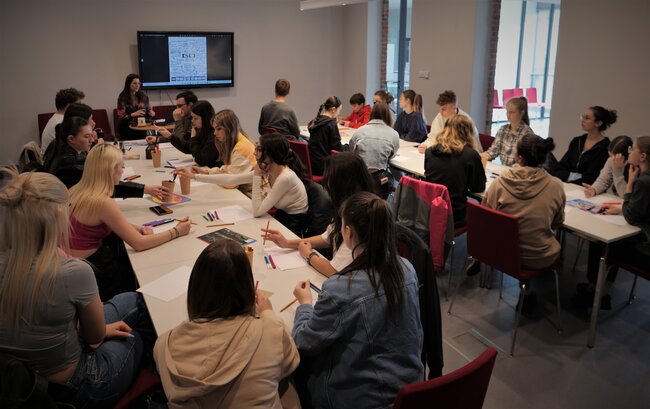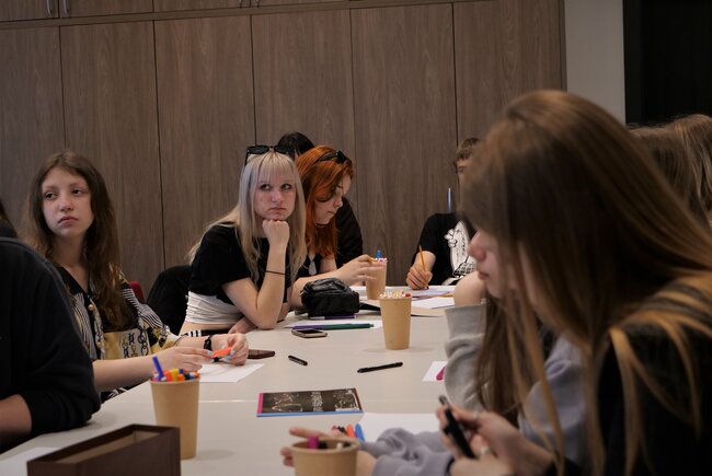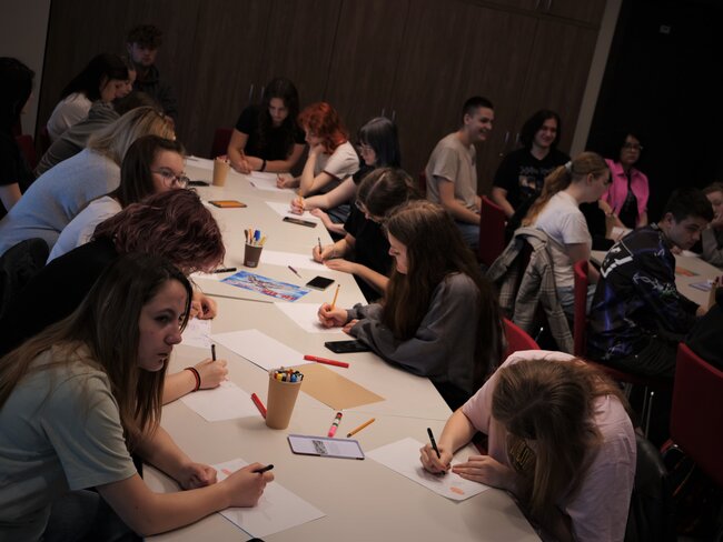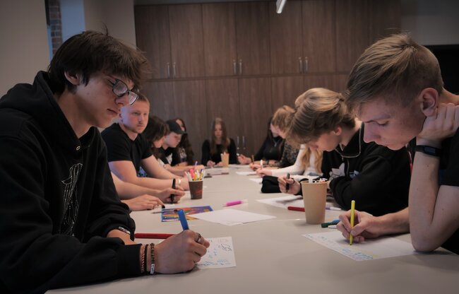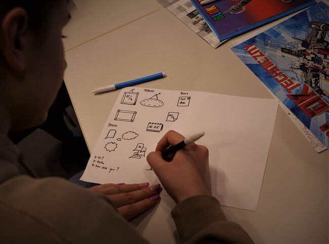 Młodzież uczyła się tworzyć wizualne notatki. Rysowali ramki, dymki, globusy, kredki, znaczki, wstęgi, flagi i strzałki tak, by wyglądały estetycznie a przede wszystkim, by porządkowały notatki w przejrzysty i atrakcyjny sposób. Bardzo pomaga to w zapamiętywaniu i szybkim przeglądzie notatek.