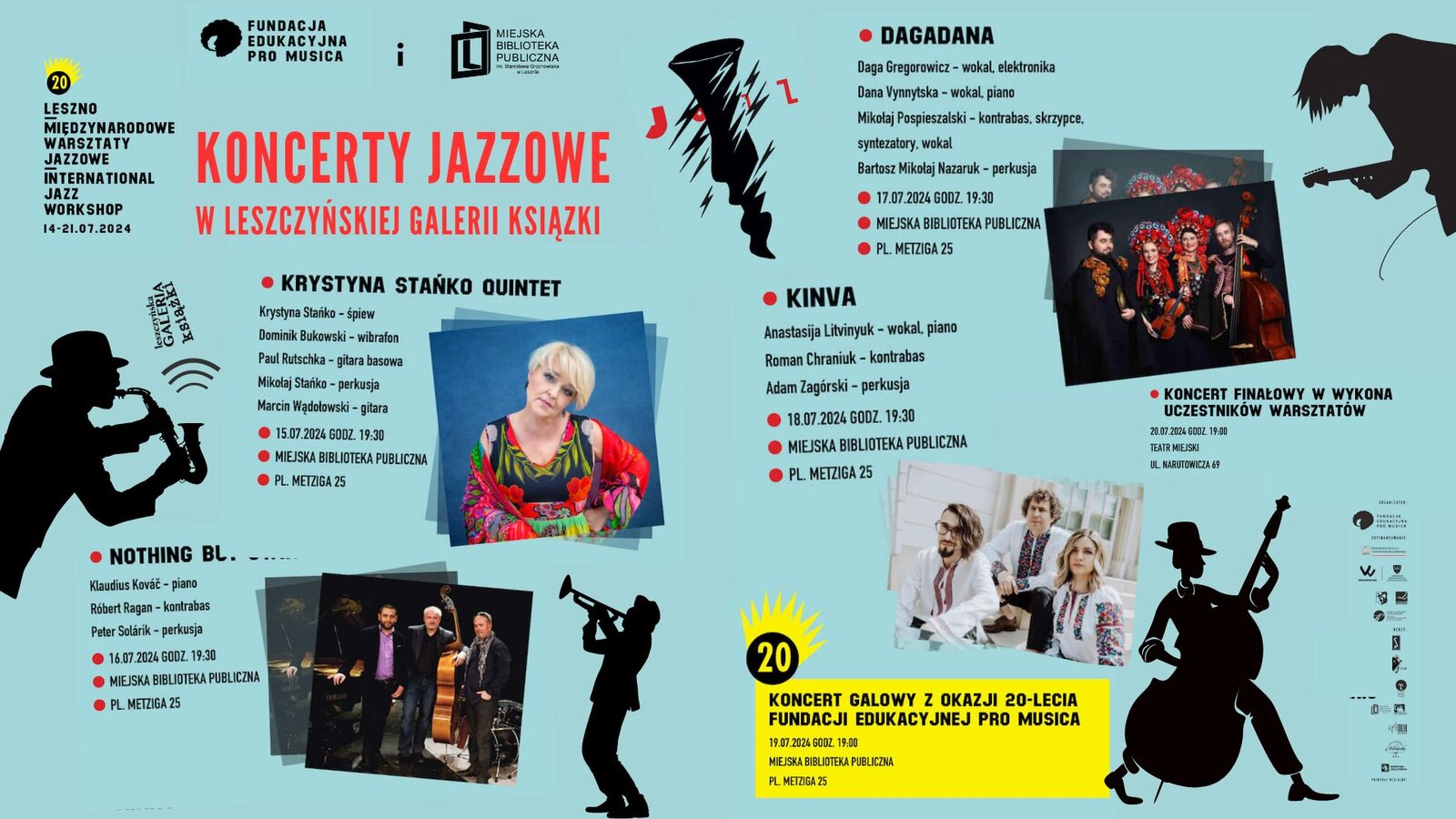 Piątek, 19 lipca, to warsztatowe święto. Zapraszamy na Koncert Galowy z Okazji 20-lecia Fundacji Edukacyjnej Pro Musica! Kto wystąpi? - to okryta tajemnicą niespodzianka. Zdradzimy tylko, że to specjalny projekt, że taki skład na jednej scenie nie spotkał się nigdy dotąd i prawdopodobnie już się nie spotka. Czeka nas więc wydarzenie unikatowe z miksem jazzowych osobowości. Warto z nami być w Leszczyńskiej Galerii Książki w ten wieczór bo ,,tylko raz na milion lat tak dzieje się…’’