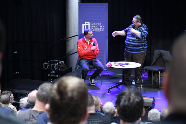 Gospodarzem wieczoru był Wiesław Dobruszek, autor wielu książek o tematyce żużlowej i chodząca encyklopedia "czarnego sportu". Przypomnijmy, że spotkanie było kontynuacją cyklu, który wcześniej odbywał się w "Galerii Lochy" przy ul. Bolesława Chrobrego, czyli poprzedniej siedzibie MBP.