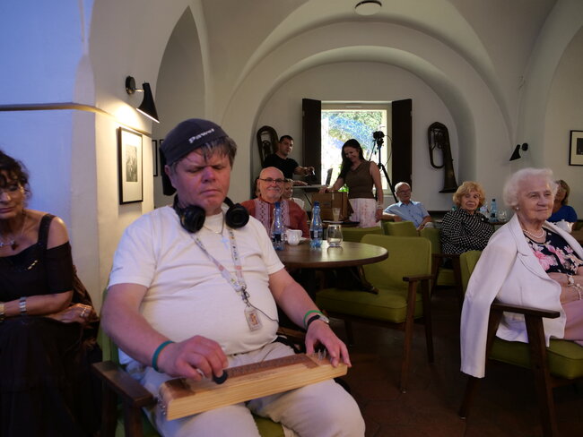 Podziękowań było zresztą dużo więcej. Niektórzy z gości Gabriela Roszaka zdecydowali się nawet na sensoryczne doświadczenie muzyki i chwycili za niezwykłe instrumenty Membrany. Duet zaprosił publiczność do współtworzenia.